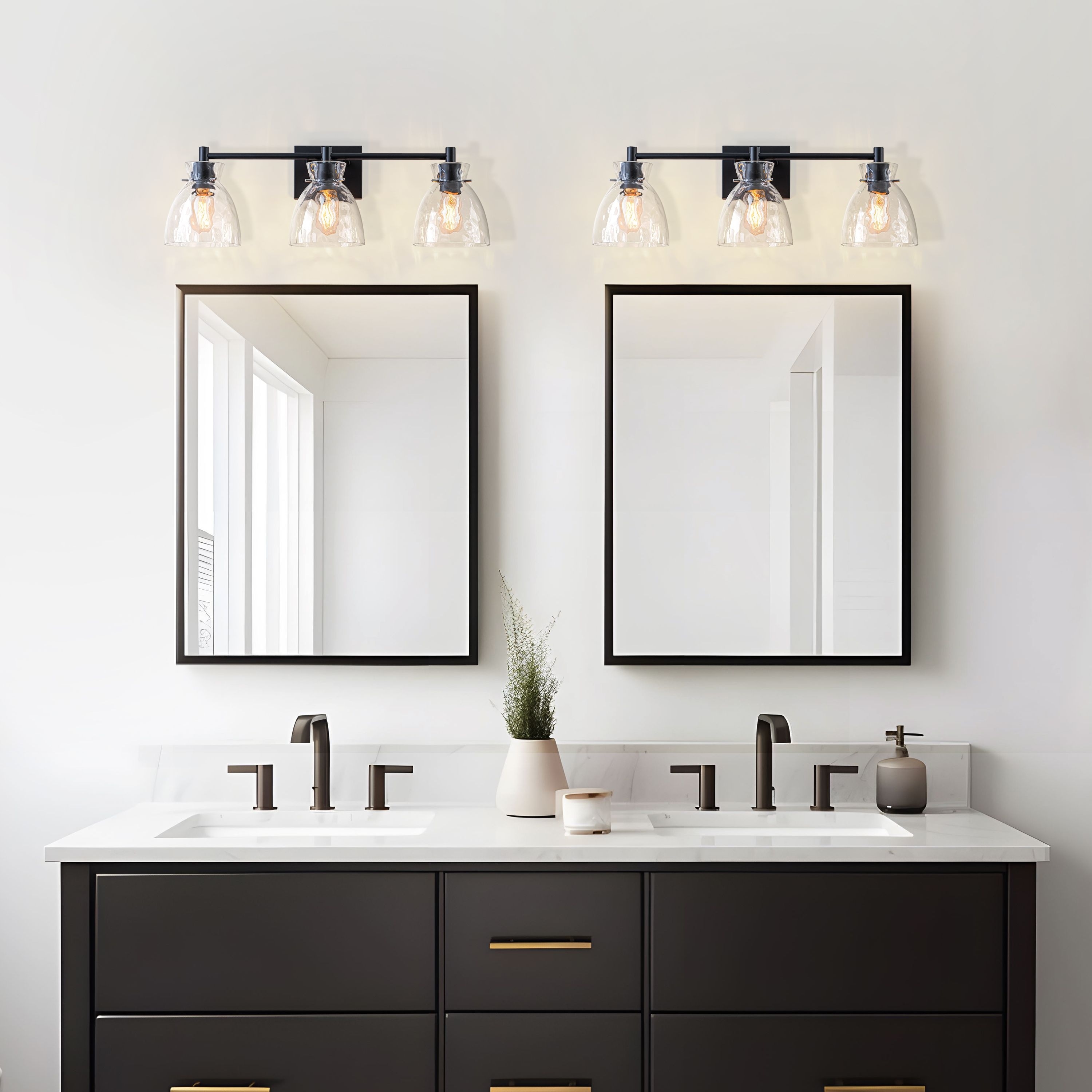 Starsky Mid-Century 3-Light Bathroom Vanity Light with Hammered Glass
