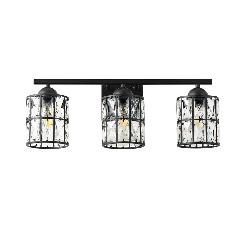 Modern 3-Light Bathroom Vanity Light in Matte Black with Clear Crystal Shades Wall Sconce Fixture