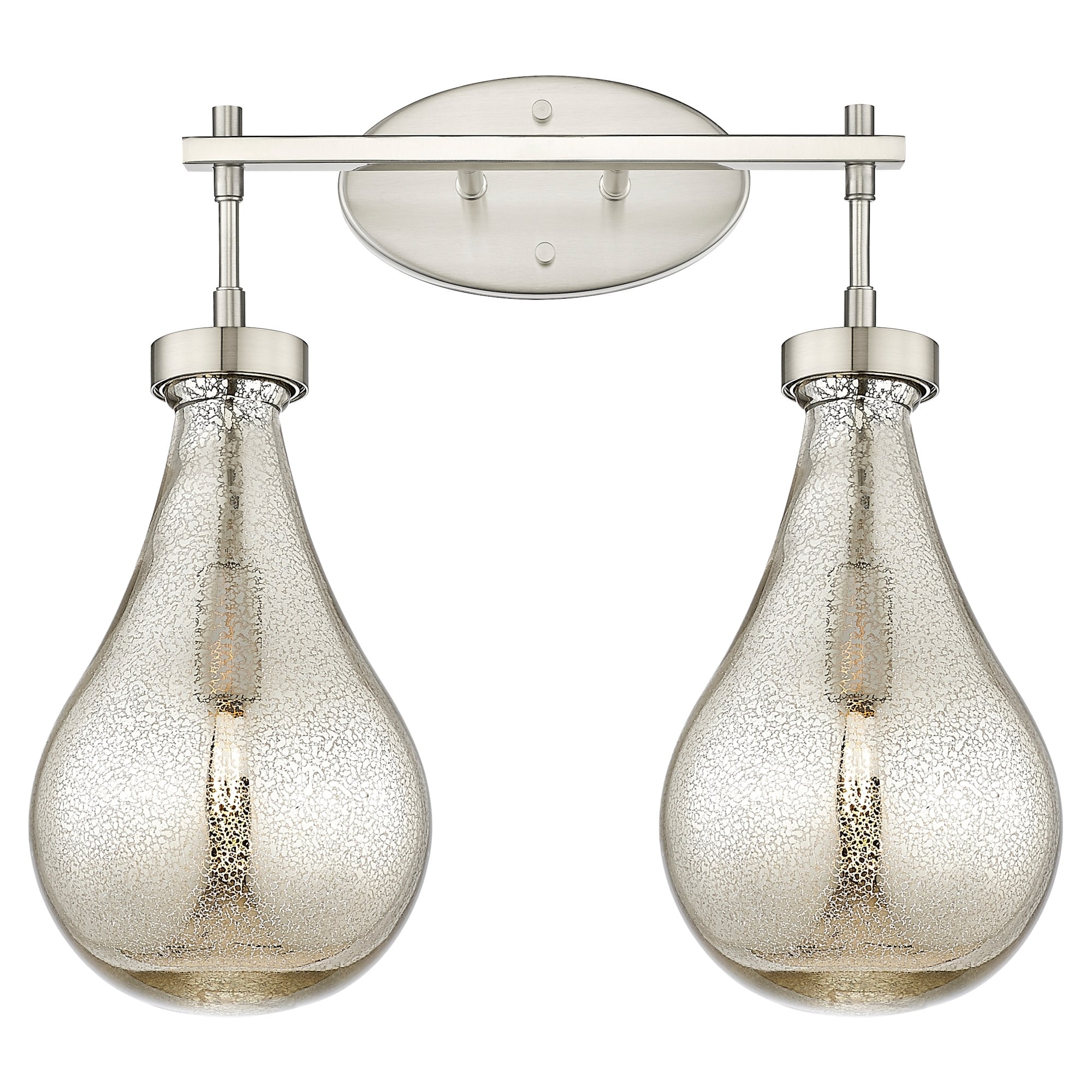 Brushed Nickel 2-Light Vanity Lights with White Etched Glass Shades