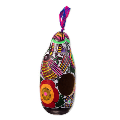 Garden Chant,'Handmade Dried Gourd Birdhouse with Andean and Bird Details'