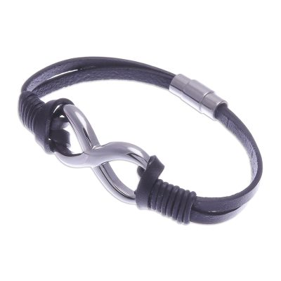Cool Infinity in Black,'Black Leather Unisex Pendant Bracelet'