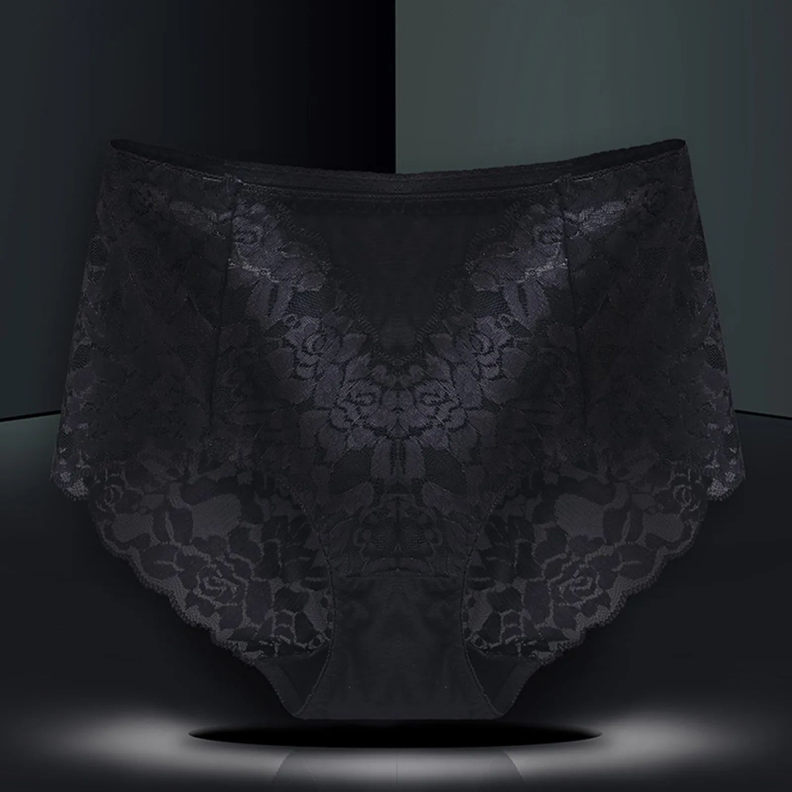 Women's Plus Size Seamless Lace Panties, High Waist, Comfortable & Sexy Briefs black xxl