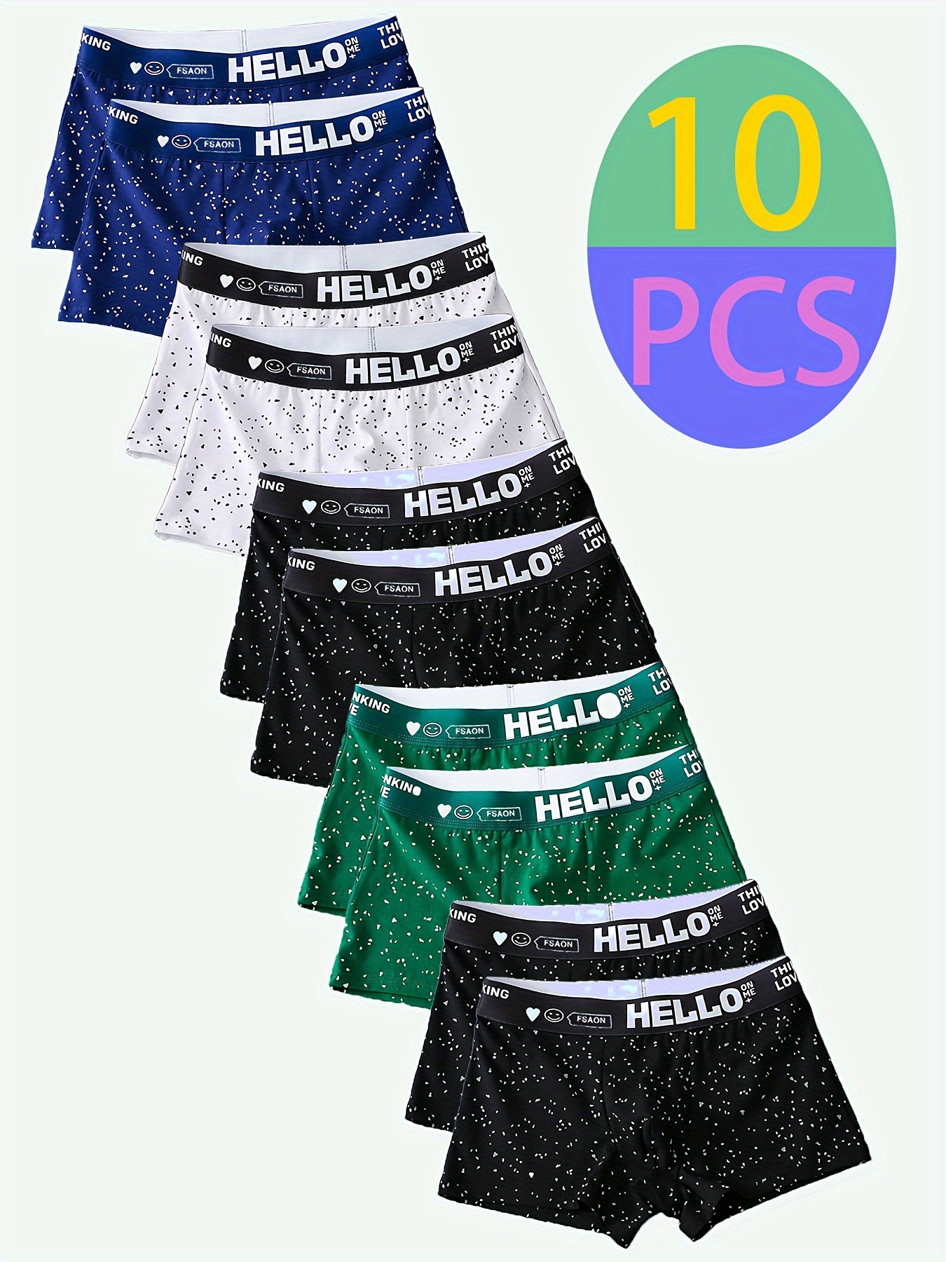 Men Milk Silk Boxers, HELLO Waistband Underwear, Comfortable Polka Dot Design Breathable Boxer Shorts multi xl 10pcs
