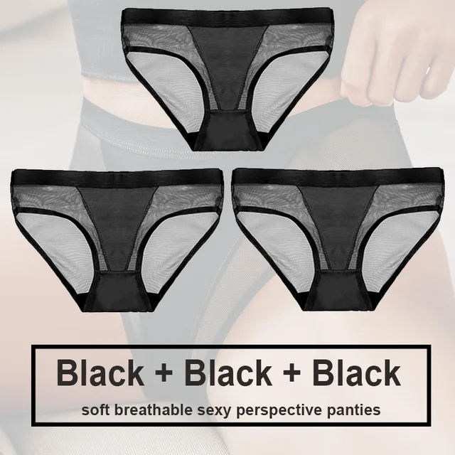 3PCS Set Women Panties Sexy Lingerie Seamless Female Underwear See Through Underpants Woman Panties Briefs Girls Intimat 3PCS Set Women Panties Sexy Lingerie Seamless Female Underwear See Through Underpants Woman Panties Briefs Girls Intimat Black M