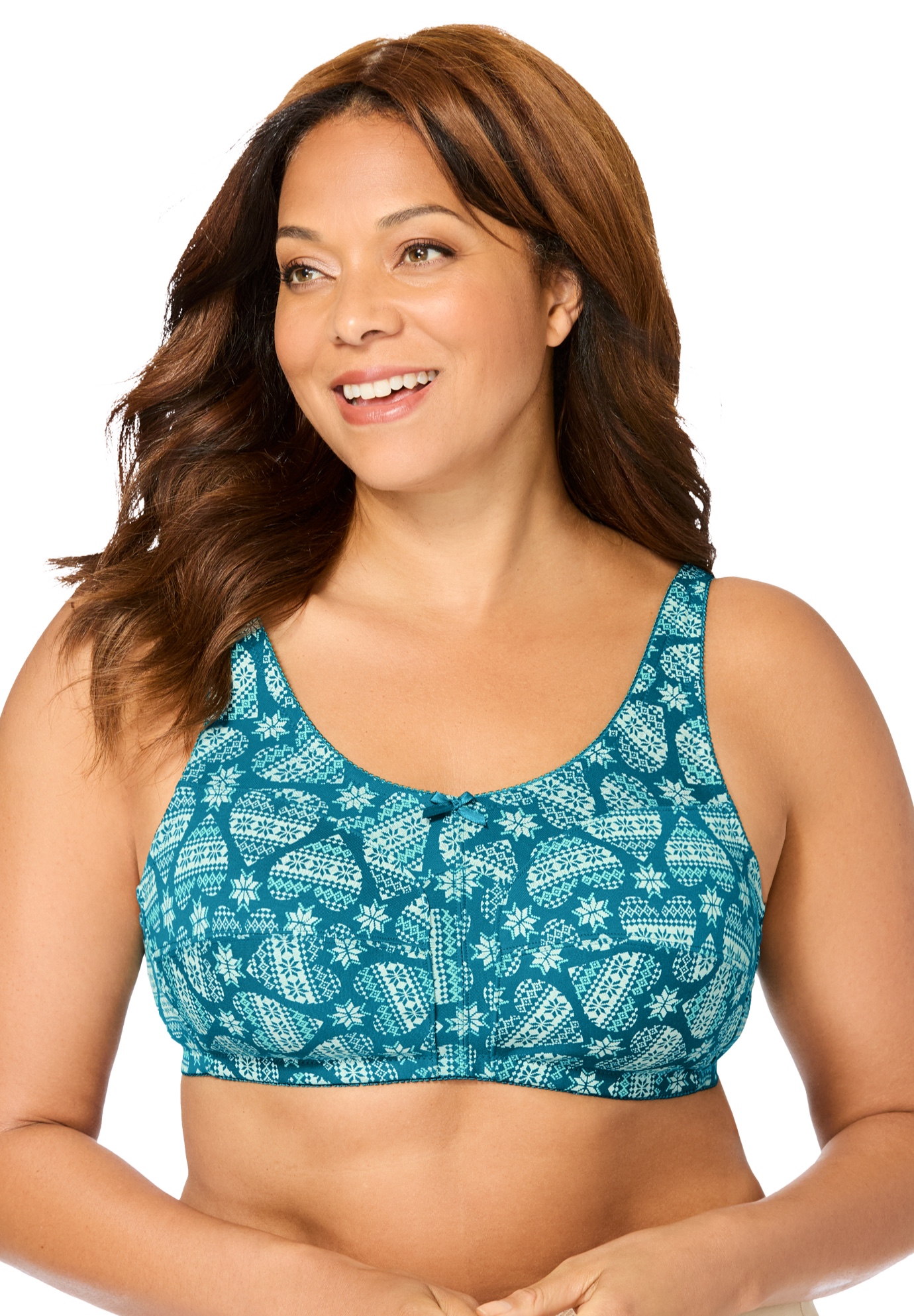 Plus Size Women's Cotton Back-Close Wireless Bra by Comfort Choice in Deep Teal Fairisle Heart (Size 42 G)