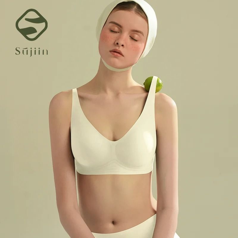 Ice Silk Seamless Bra Ultra Thin Wireless Plus Size Lingerie m beige