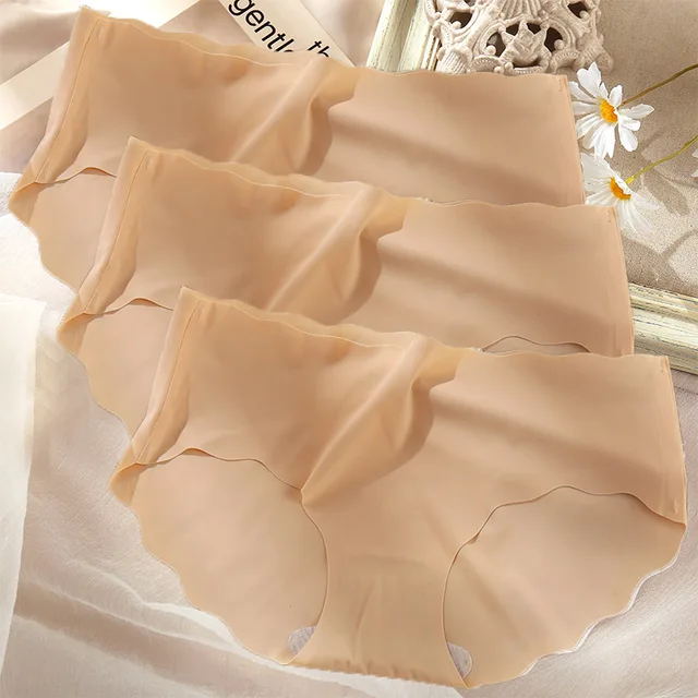 Womens Seamless Silk Satin Panties, Wavy Edge Cozy Lingerie Briefs For Everyday Comfort set3 l 4pcs