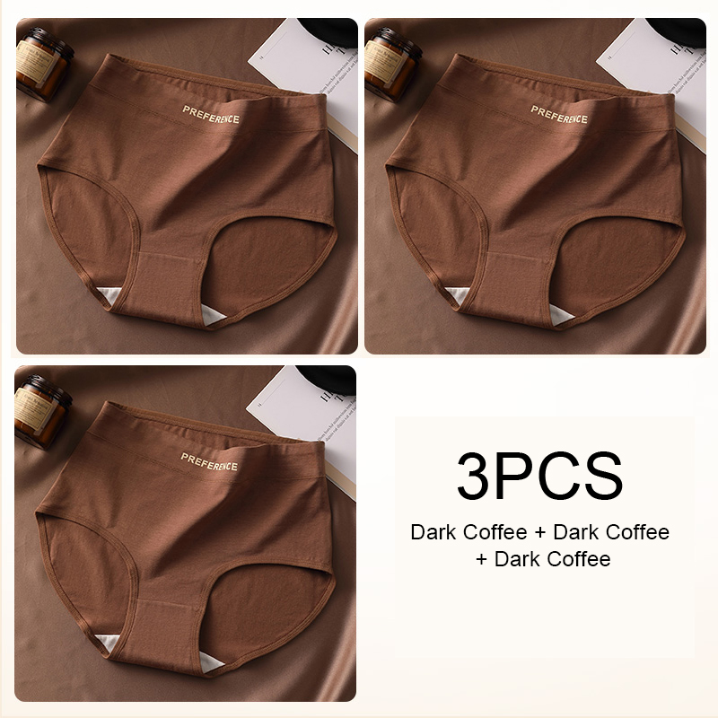 Sexy High Waist Panties For Women, Soft Pure Cotton Briefs, Breathable & Comfortable Female Underwear dark Coffee 3pc l