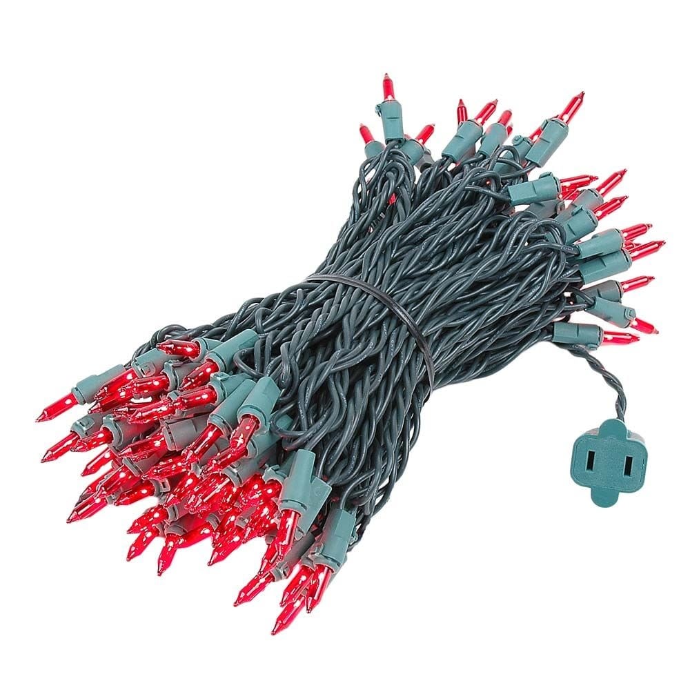 100 Light Christmas Mini Light Set, Green Wire, 50' Long
