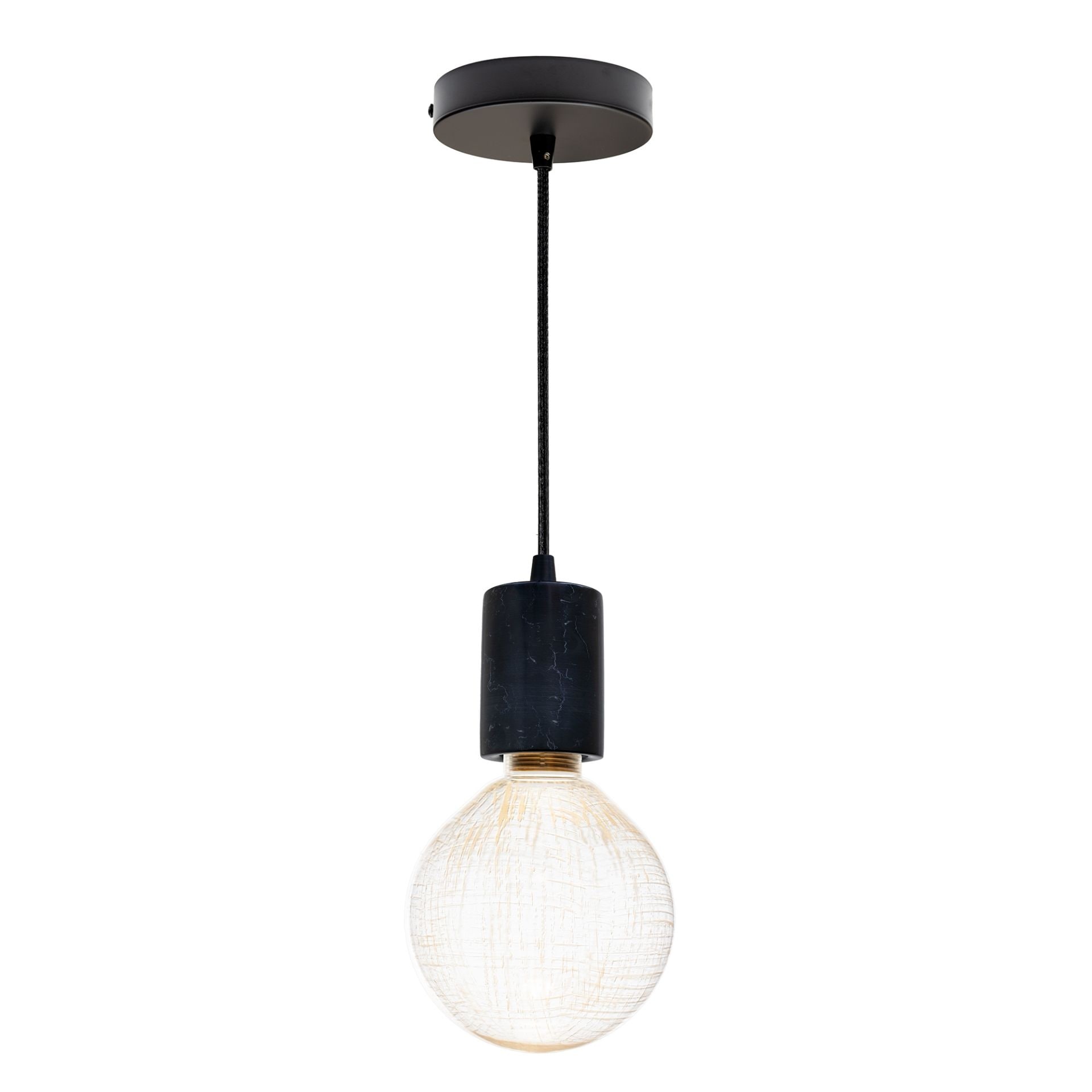 G125 Globe Pendant Light + LED Bulb – Black Marble, Shatter-Resist, Indoor/Outdoor - Large