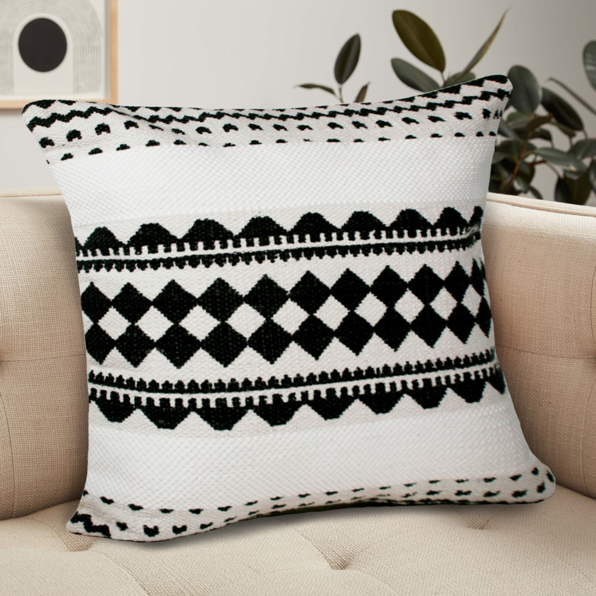 Handwoven Diamond Cotton Throw Pillow Cover - 20" - Black and White
