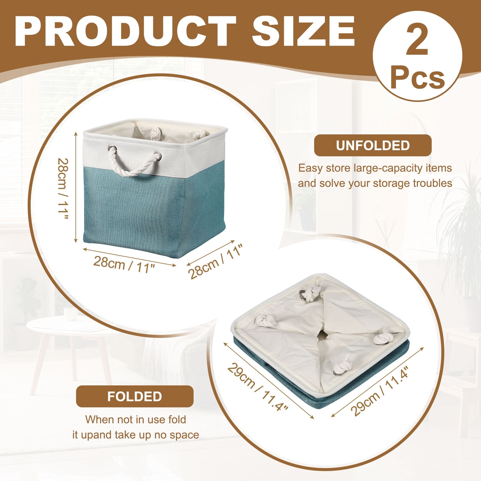 Fabric Storage Bins, Foldable Storage Cubes with Rope Handles Collapsible Bins Basket