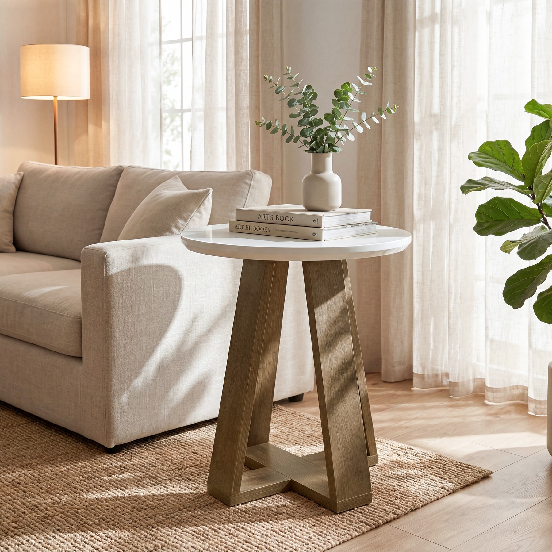Modern Round Side Table, Small End Table for Living Room
