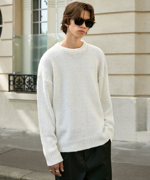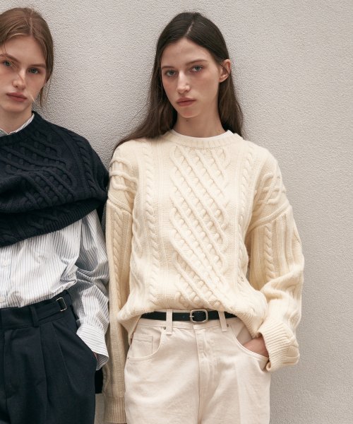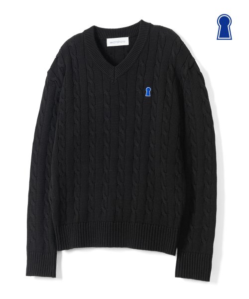 secondmonolgue Heavyweight keyhole cable V-neck knit black_SEKT010BLACK