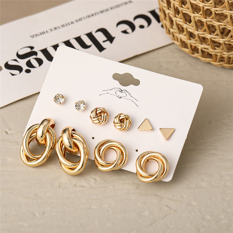 Gold Filled Stud & Zircon Dangle Earrings Set Fashionable Women's Ear Cuffs & Hoops For Party Jewelry Wholesale JQH0058 SS SI