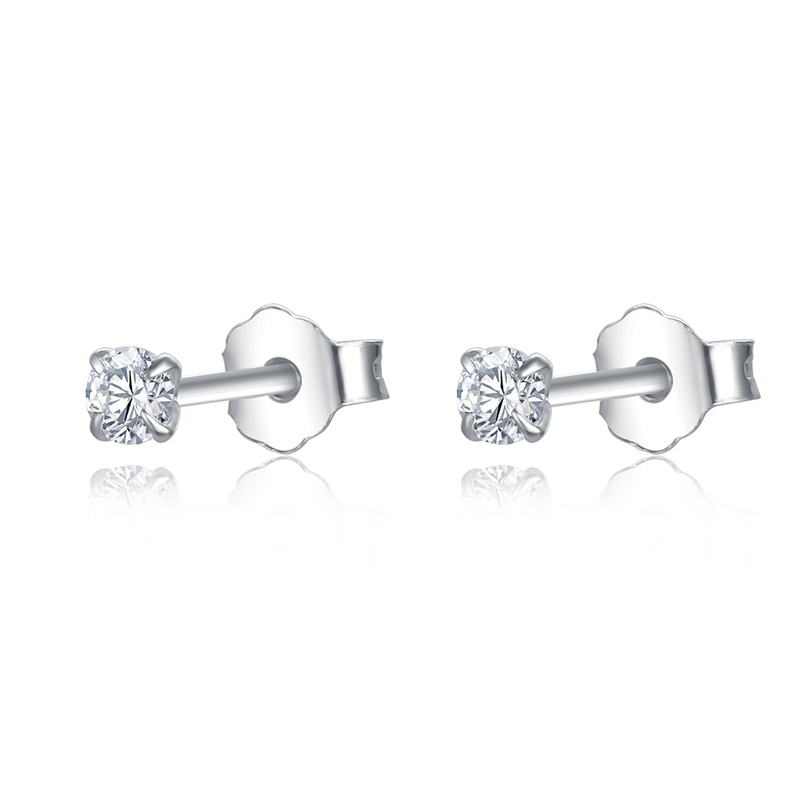 925 Sterling Silver Small Diamond Stud Earrings: Wedding & Engagement Jewelry Gift For Women E2056S