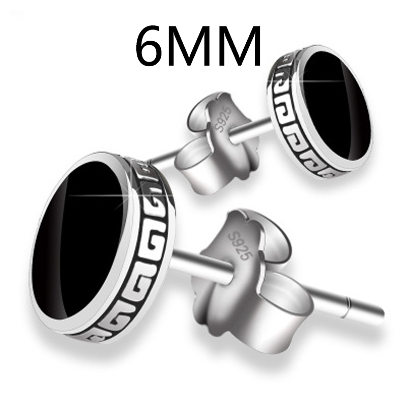 ZDADAN 925 Sterling Silver Black Round Stud Earrings 6mm & 8mm Sizes For Women Wholesale Jewelry Accessories 6MM