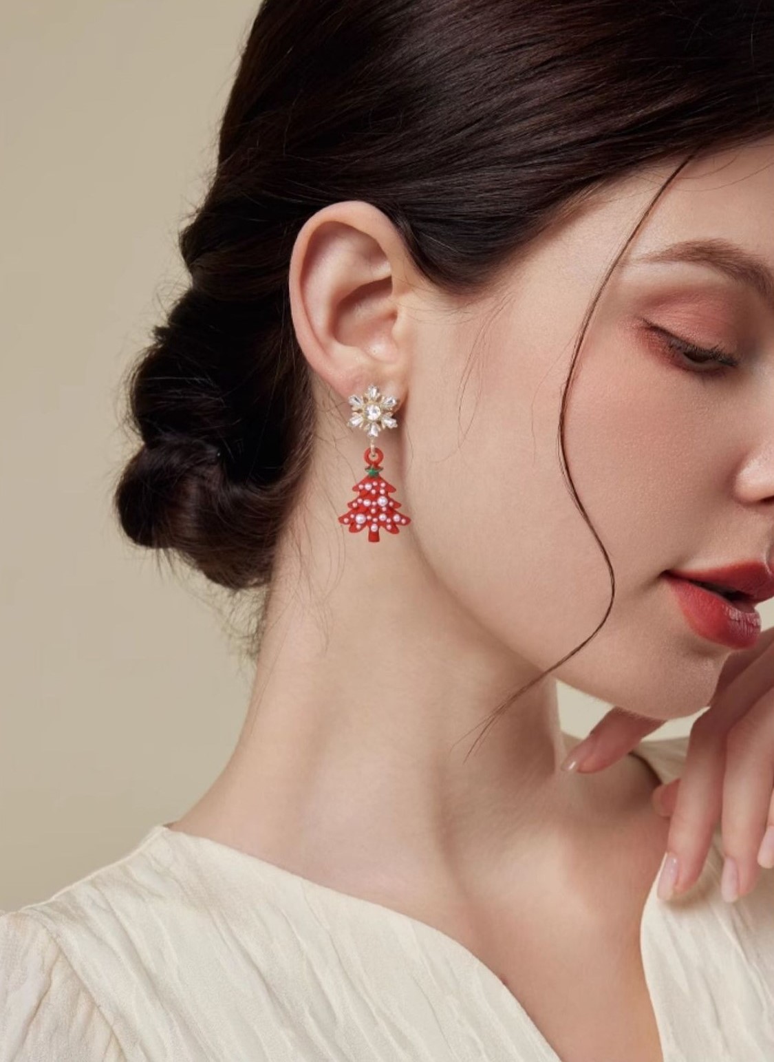 Elegant Snowflake Stud Earrings For Women 2024 Luxury Winter Jewelry green Tree
