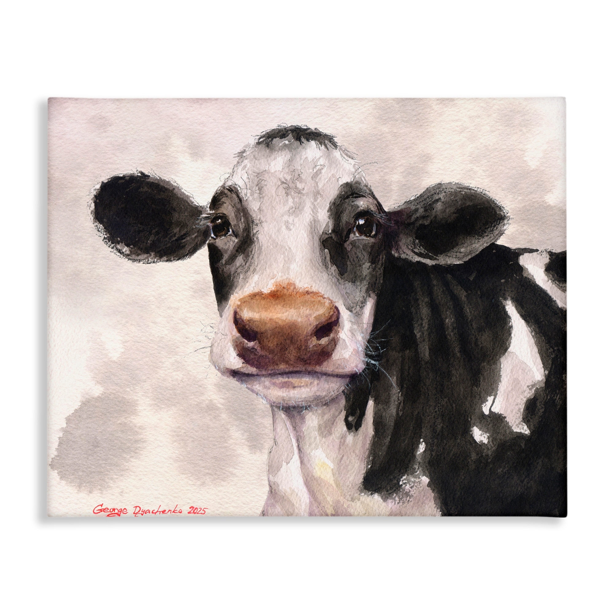Stupell Cute Cow with Abstract Background Canvas Wall Art Design by George Dyachenko