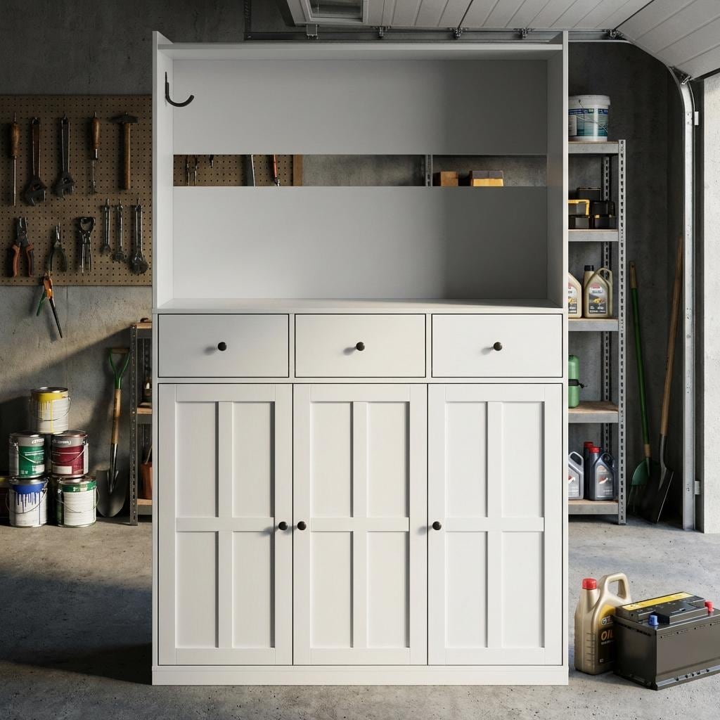 Garage Storage Cabinet with Charging Station Mount, White Storage Organizer with Drawers & Doors, EV Charger Stand Cabinet 47.2"