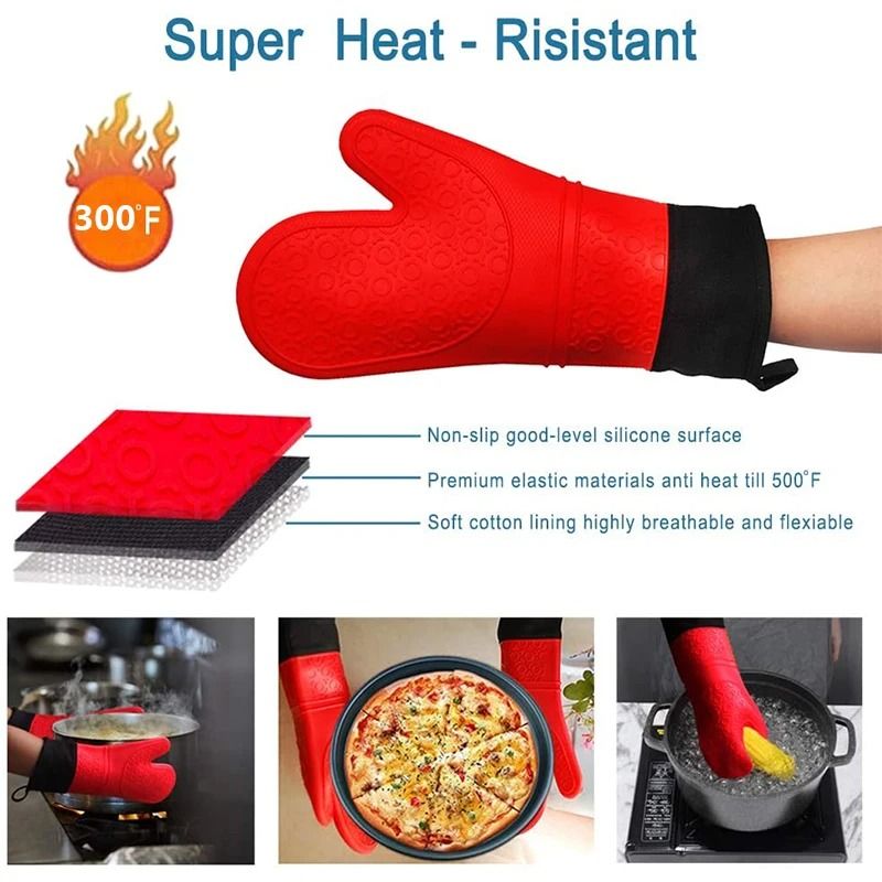 Professional Silicone Oven Gloves Heat Resistant Non Slip Set 1 Pc Black