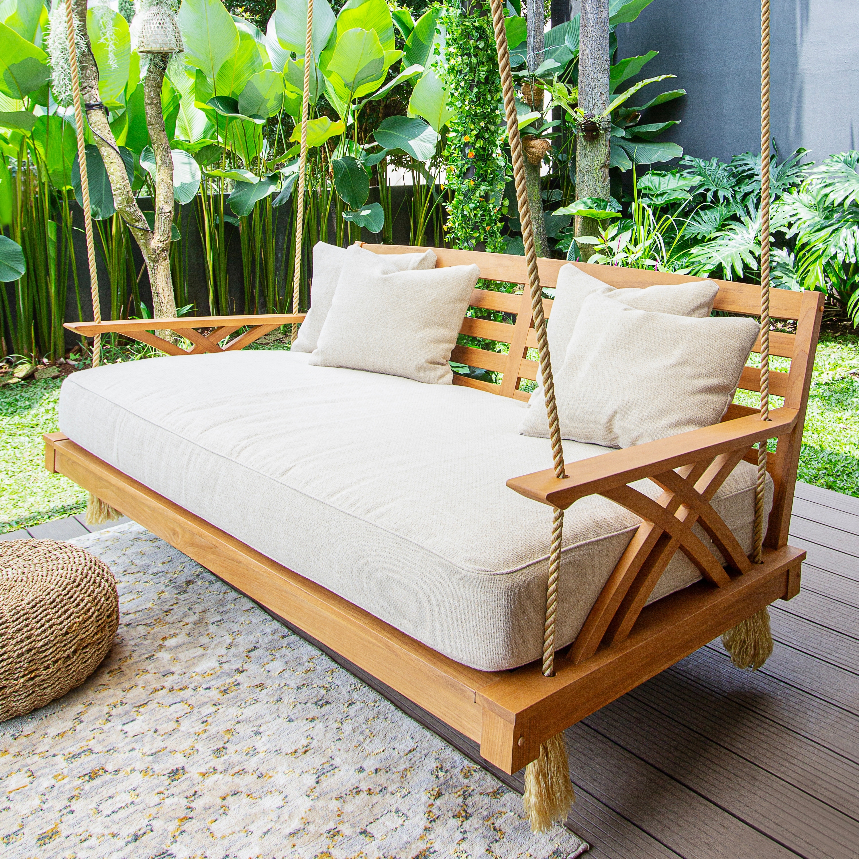 Cambridge Casual Carmel Teak Outdoor Porch Swing Daybed with Cushion
