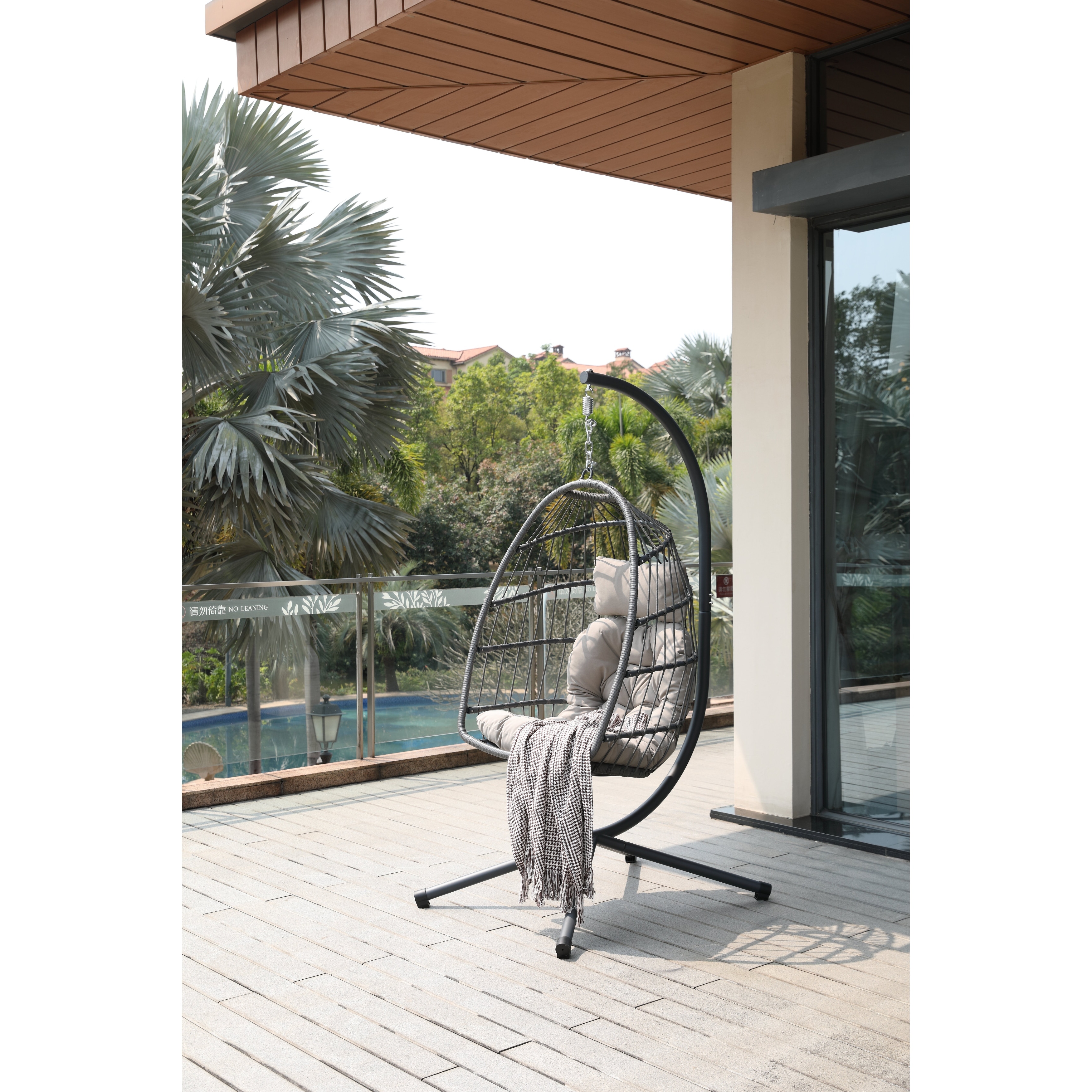 Egg Chair with Stand, Outdoor Wicker Hanging Swing Chair with Cup Holder, Removable Guardrail and Cushions