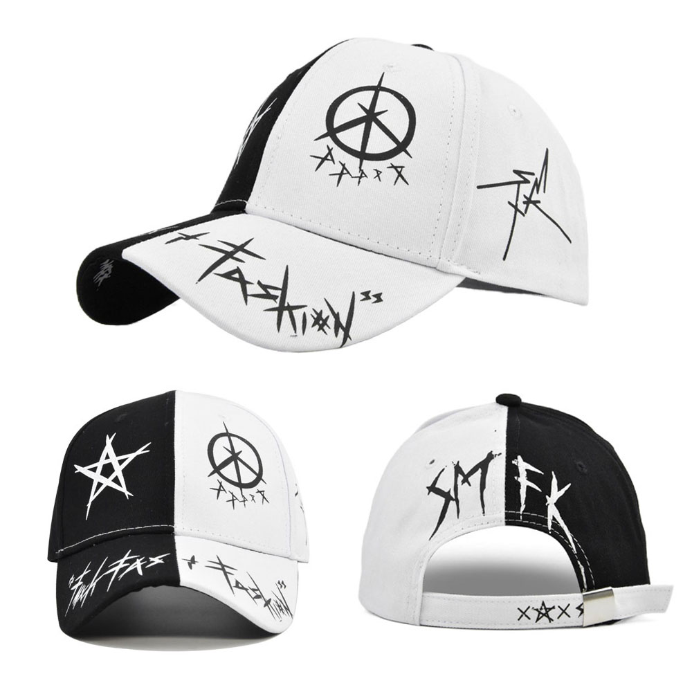 Letter Baseball Cap Graffiti Sun Hip Hop Cap, Patchwork Snapback Visor Hat For Men Women, Fashion Cotton Adjustable black And White
