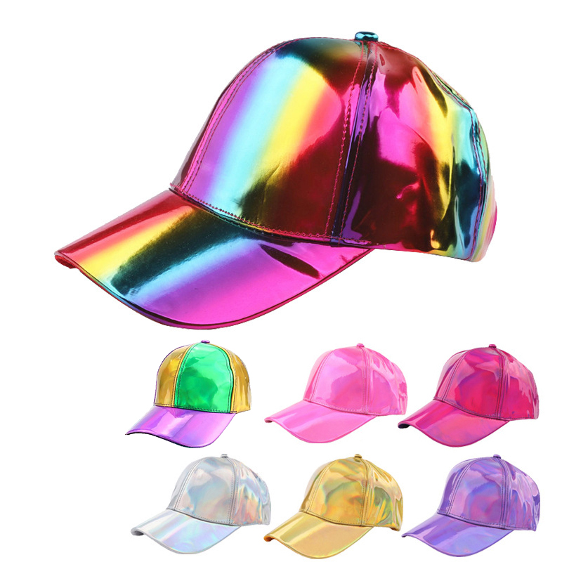 PU Rainbow Color Changing Baseball Hat For Men And Women, Fashion Laser Hip Hop Cap, Outdoor Snapback Shiny Party Hat golden