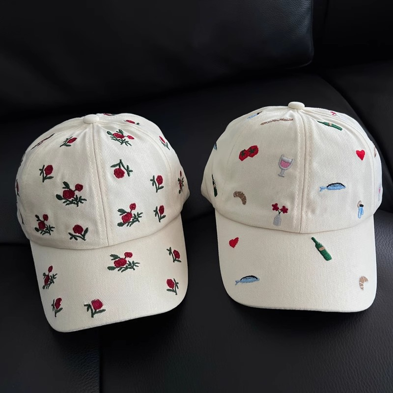 Rose Cartoon Embroidered Baseball Caps For Women And Men, Summer Travel Sun Hats, Y2K Fashion Versatile Headwear 2