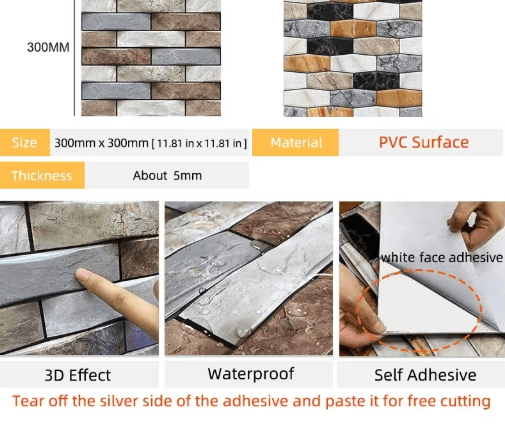 3D Brick Wall Sticker Waterproof Peel And Stick Self Adhesive Wall Decor Set 15pcs 24 5 Pcs