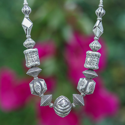 Striking Style,'Silver Pendant Necklace with Thai Stamped Hill Tribe Beads'