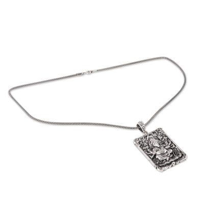 Mahaganapati,'Rectangular Sterling Silver Ganesha Necklace from India'