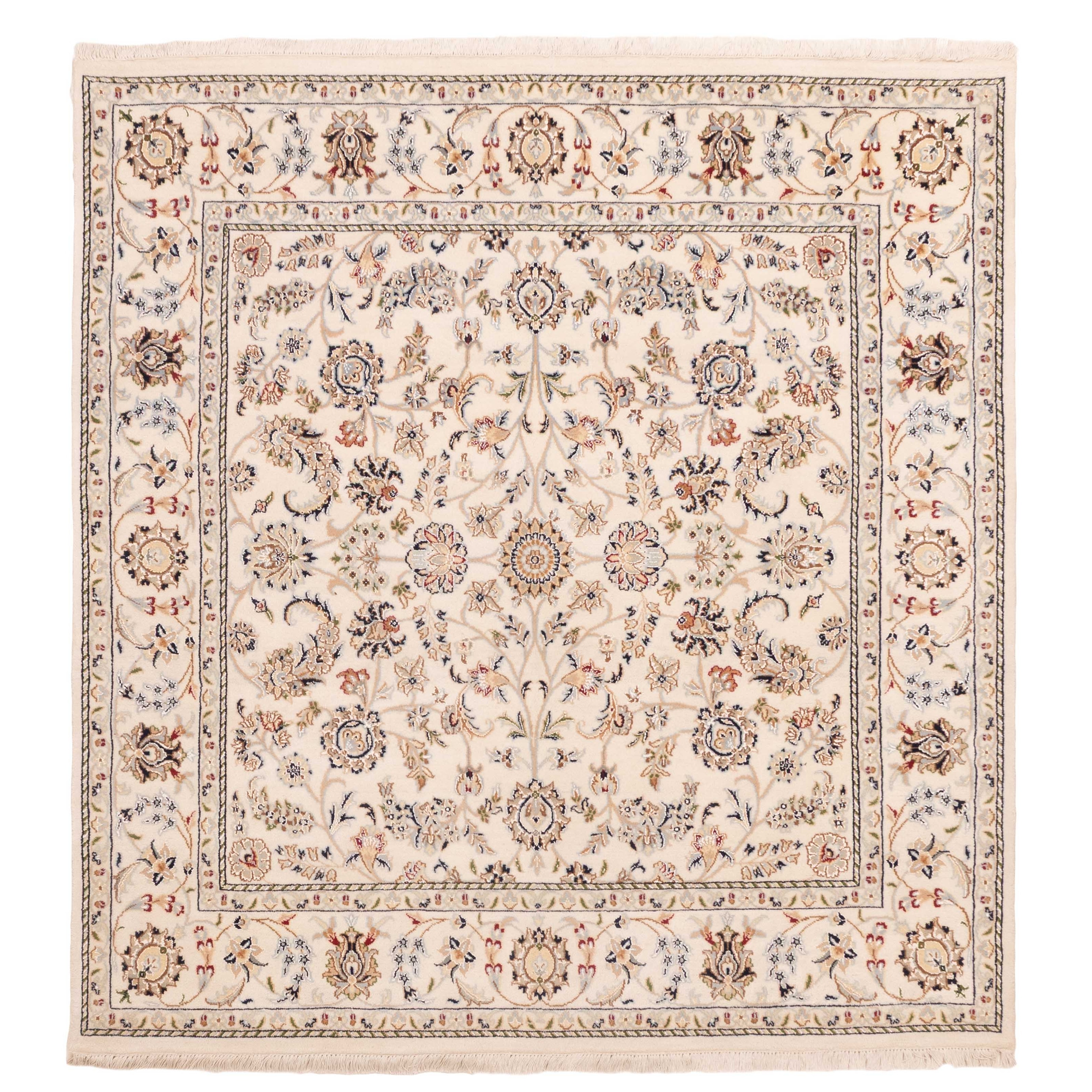 ECARPETGALLERY Hand-knotted Nain Cream Silk, Wool Rug - 5'8 x 5'11