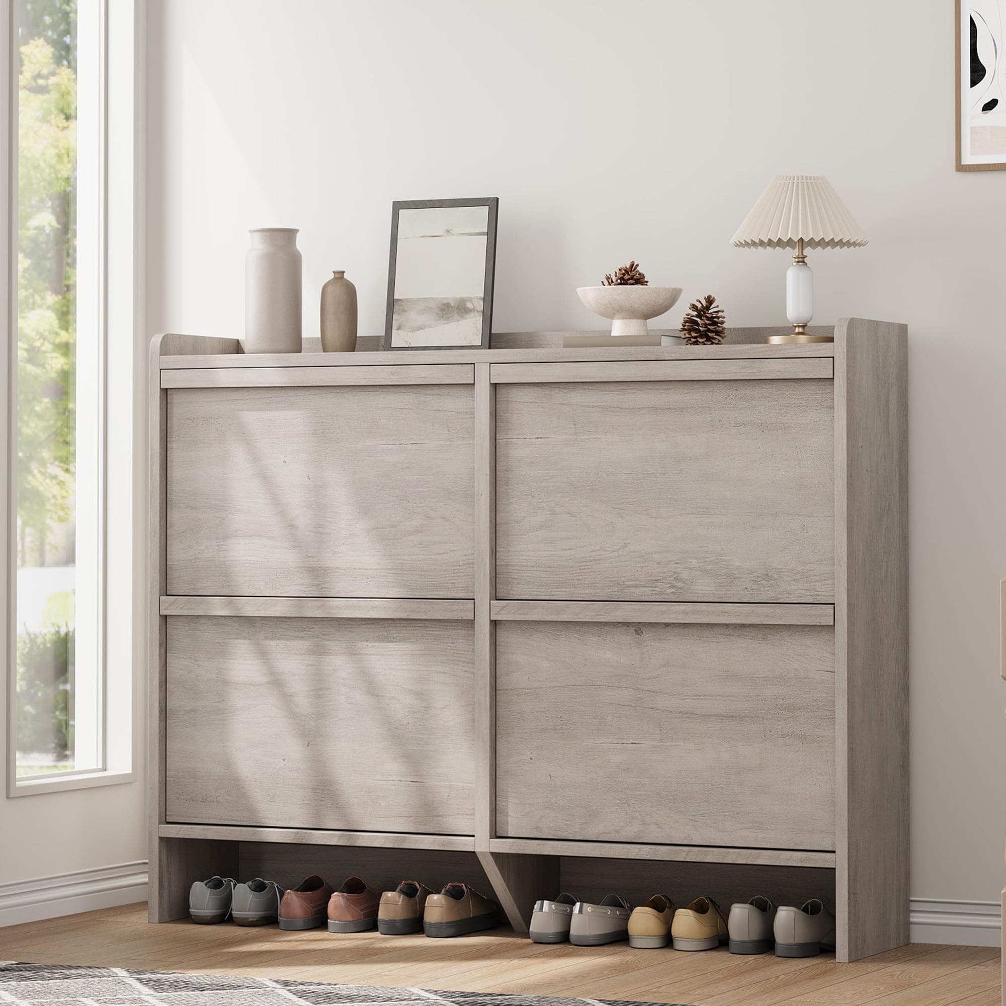 Shoe Cabinet with 4 Flip Drawers & Adjustable Shelf, Wooden Large Hidden Shoe Storage for Entryway or Hallway