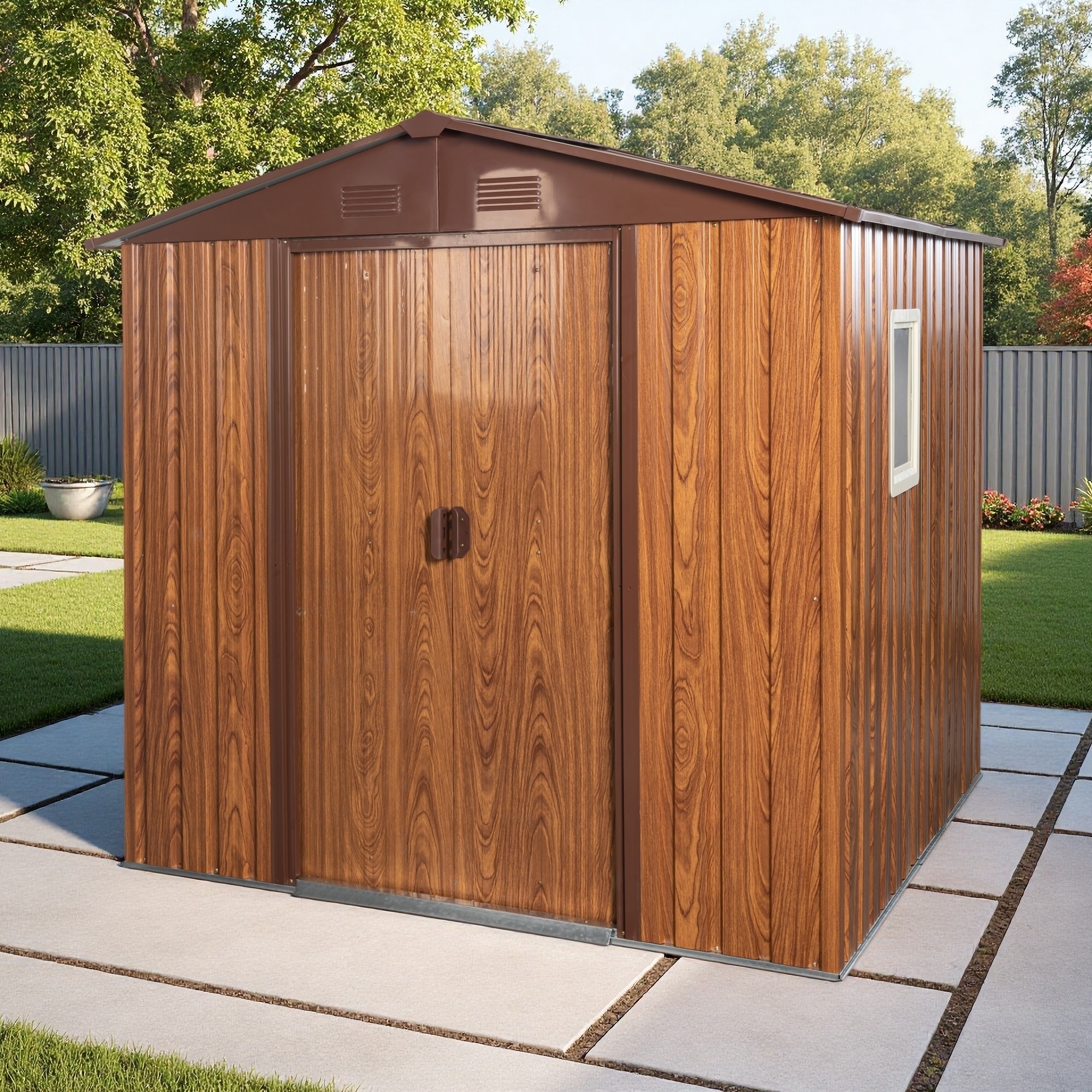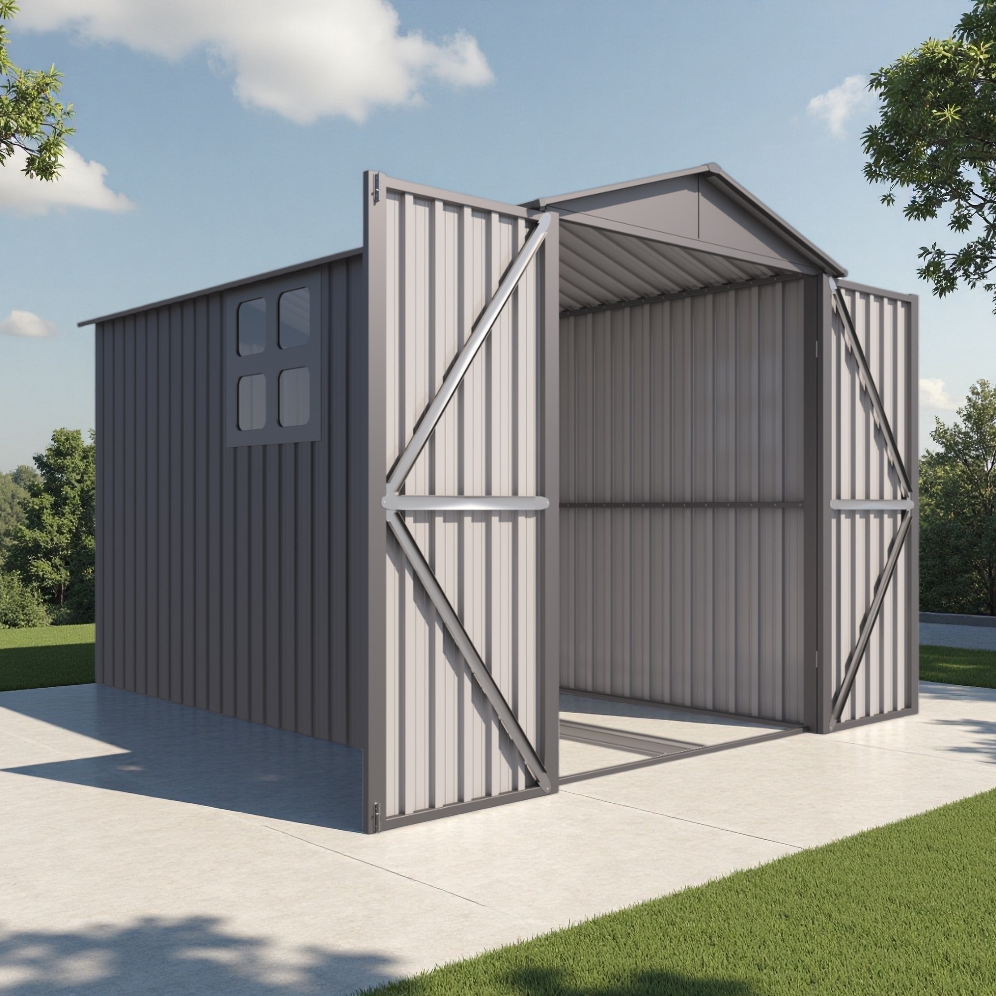 Outdoor Metal Storage Shed with Window, Sliding Doors and Punched Vents