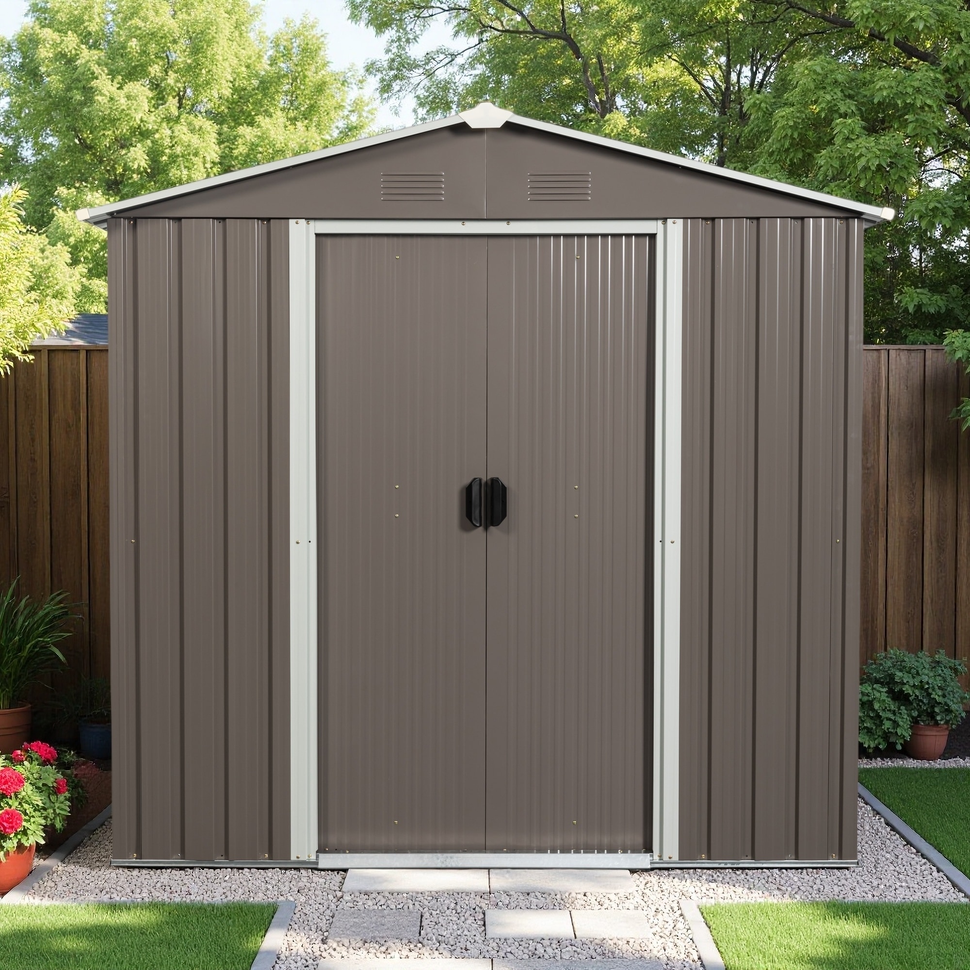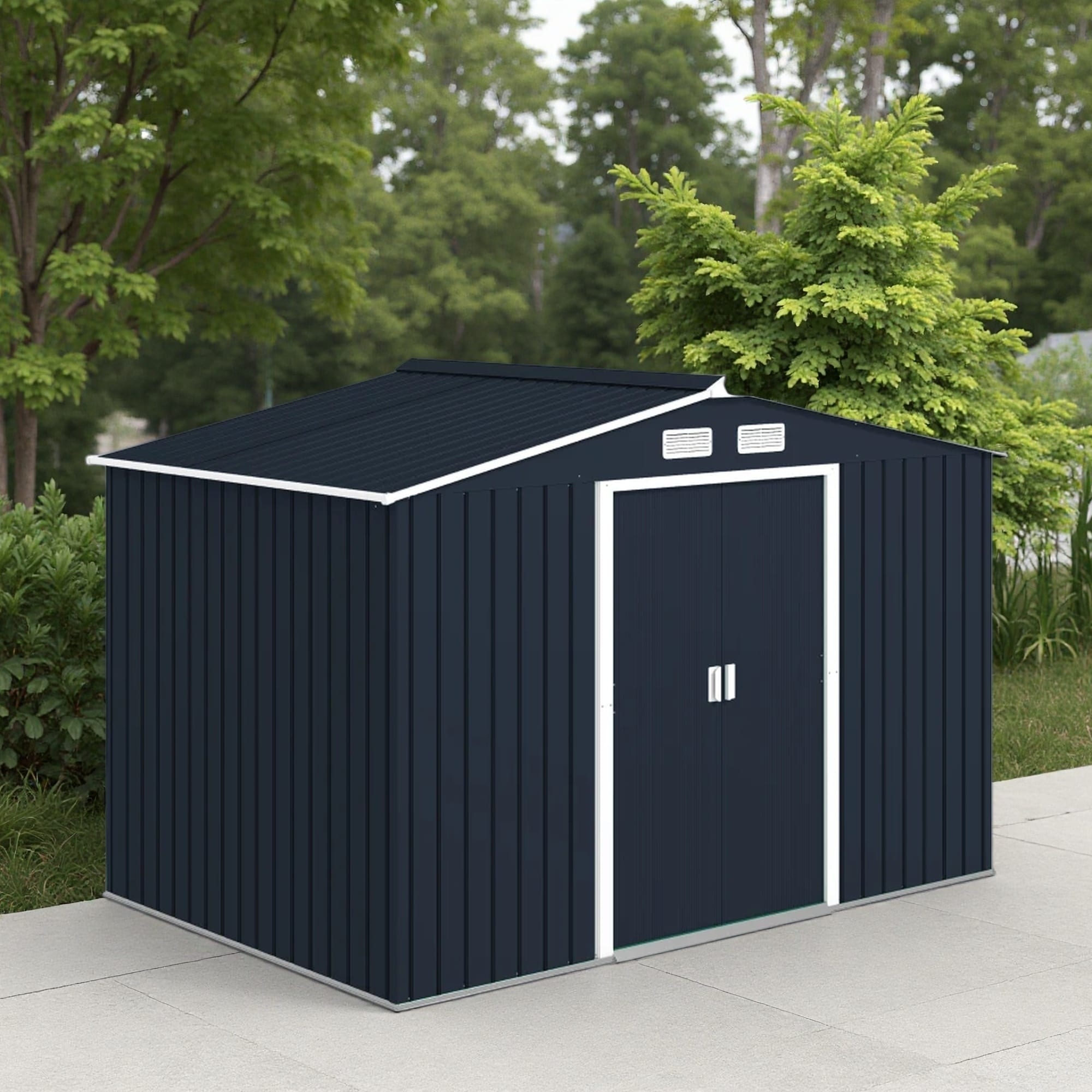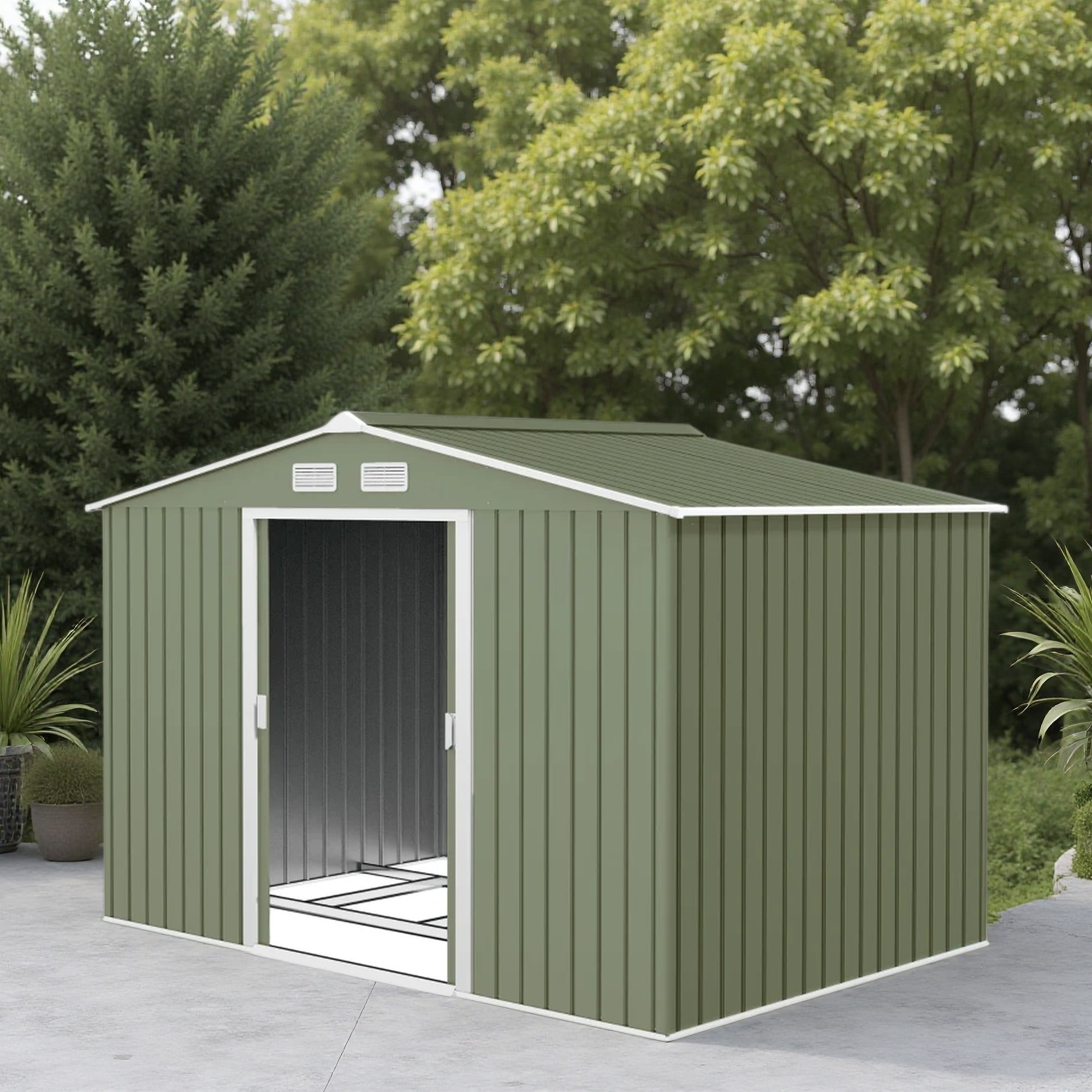 Outdoor Metal Storage Shed with Sliding Doors and Punched Vents
