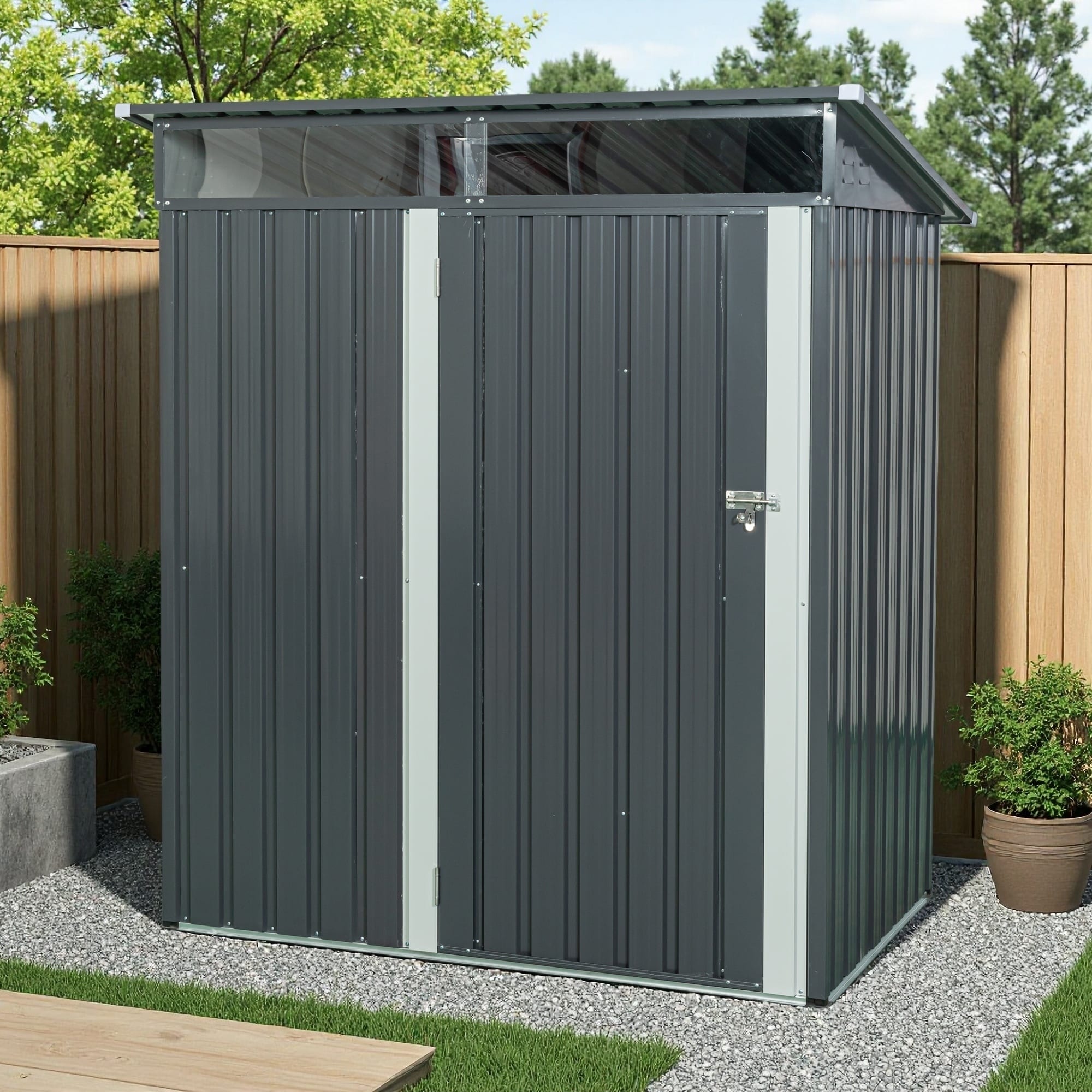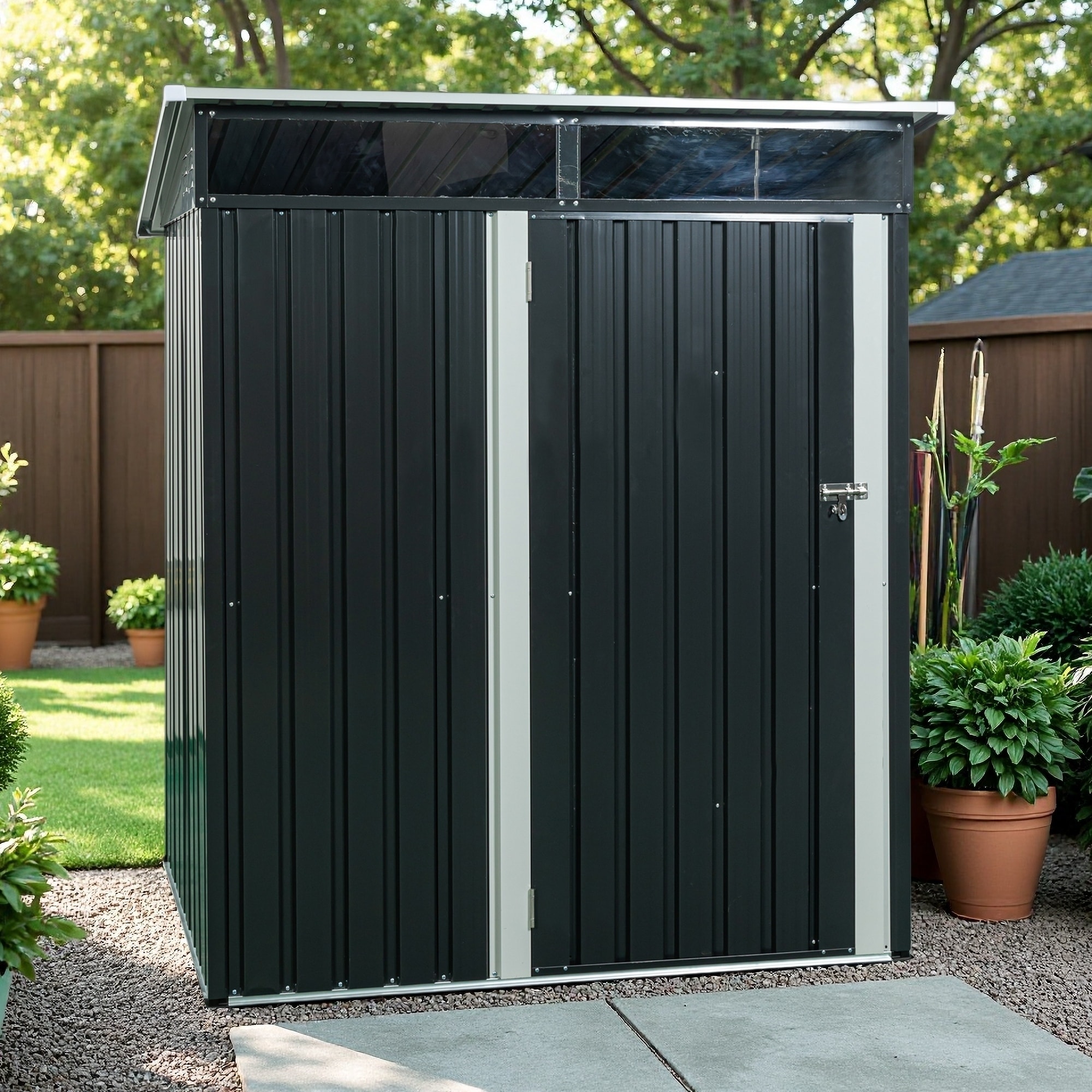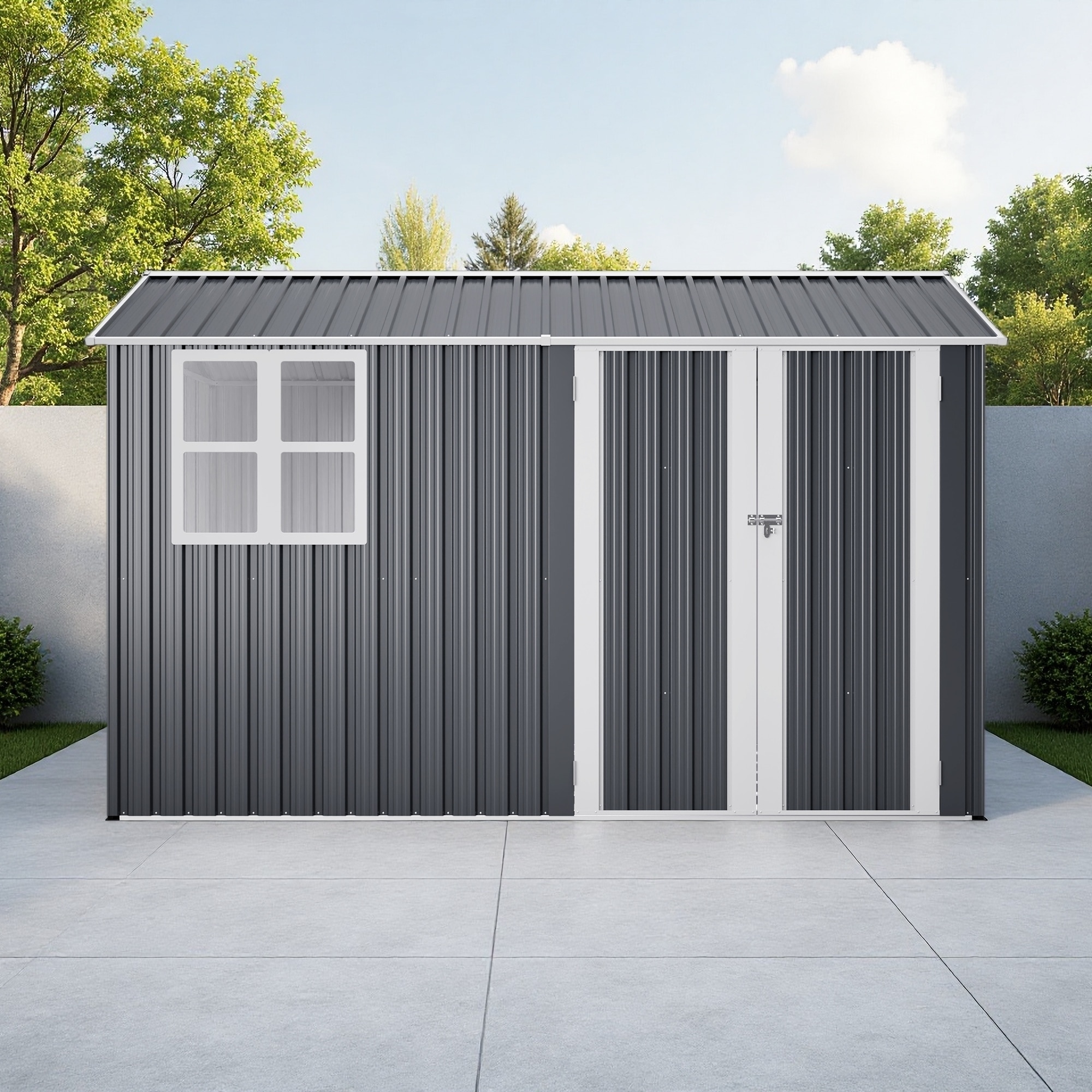 Outdoor Steel Storage Shed with Clear Window and Lockable Doors for Garden, Backyard