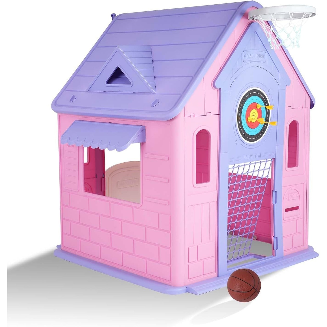 Charming Cottage Playhouse for Kids,Indoor Outdoor Play House with Basketball Hoop - Purple