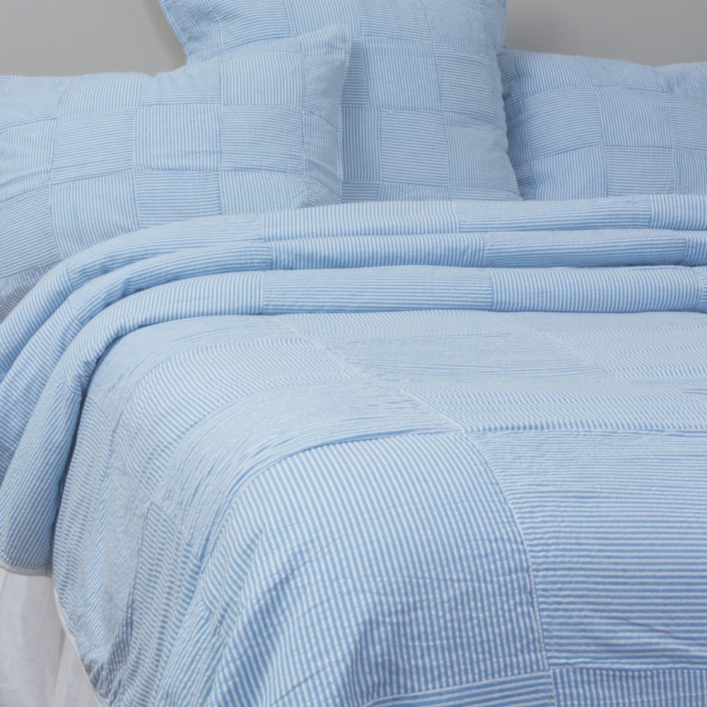 Seersucker Blue Patchwork Quilt Set