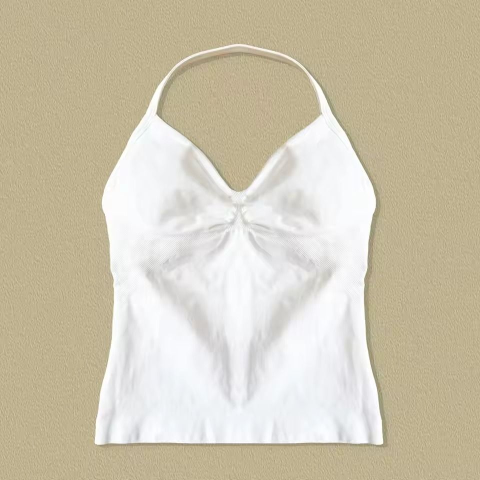 Longline Strappy Sports Yoga Tank Top Open Back Fitness Halter Bra white
