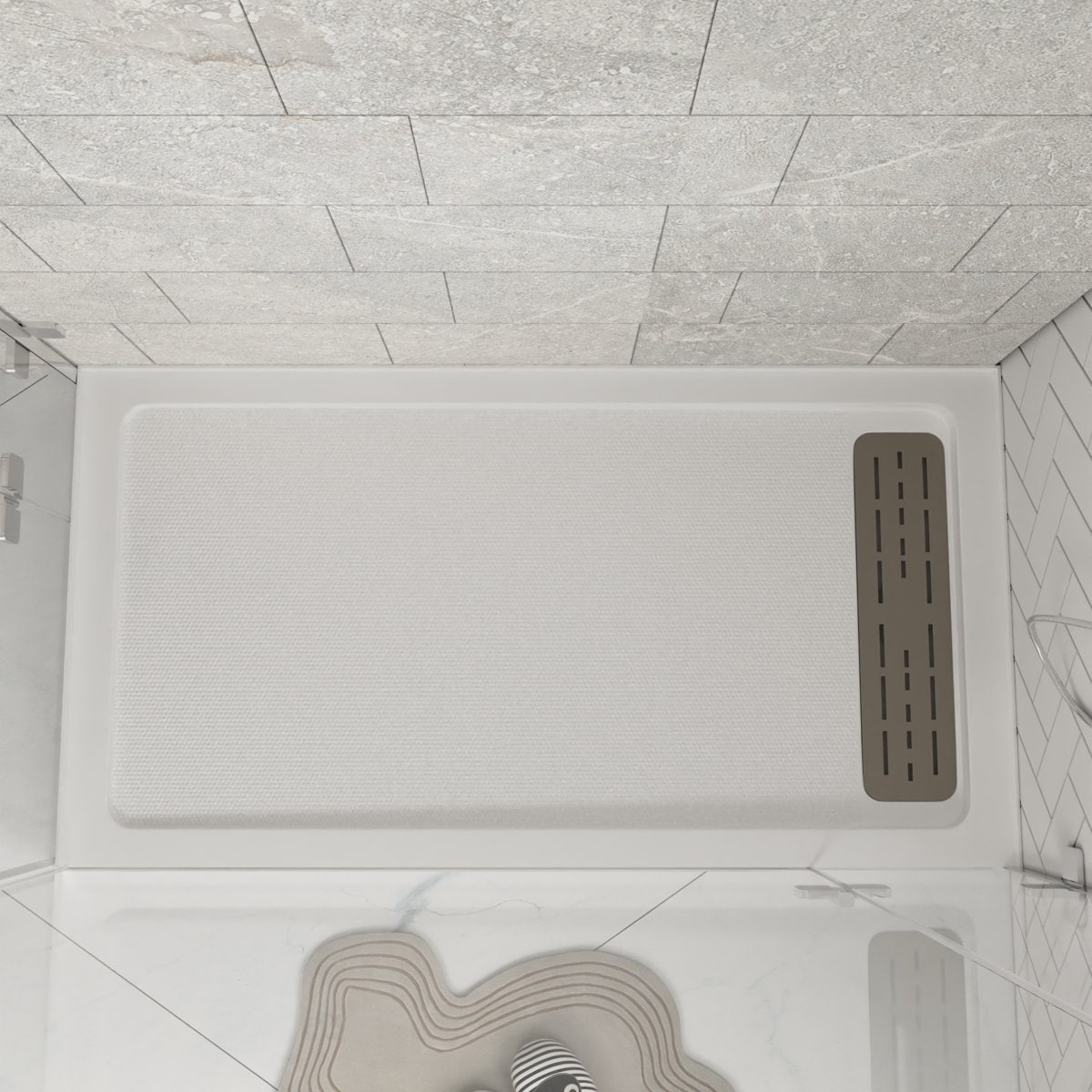 60" x 32" White Shower Base with Drain Assembly and Drain Cover Included, Non-slip Shower Pan,Left Drain Location DV-1SB0099L