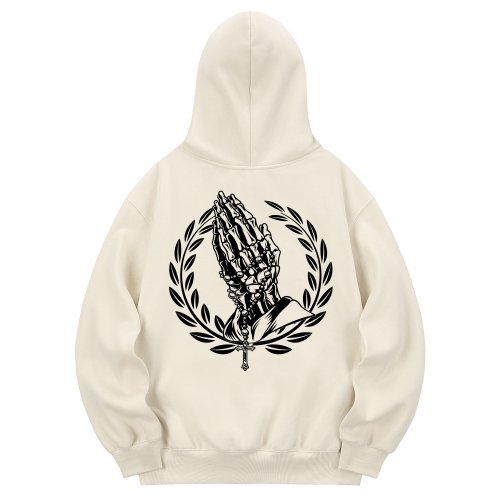 kan6312 KHC0194 Skull Hand Fleece Hood Cream