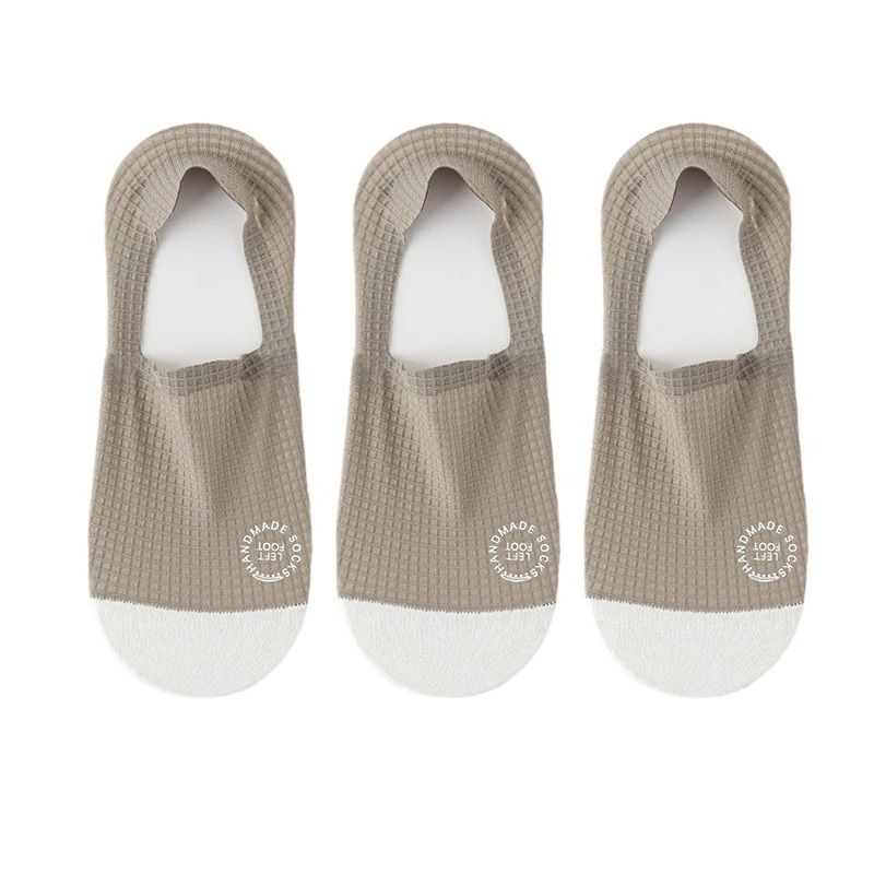 Men Invisible Socks 3 Pairs Breathable No Show Boat Socks With Waffle Mesh And Sweat Absorption khaki