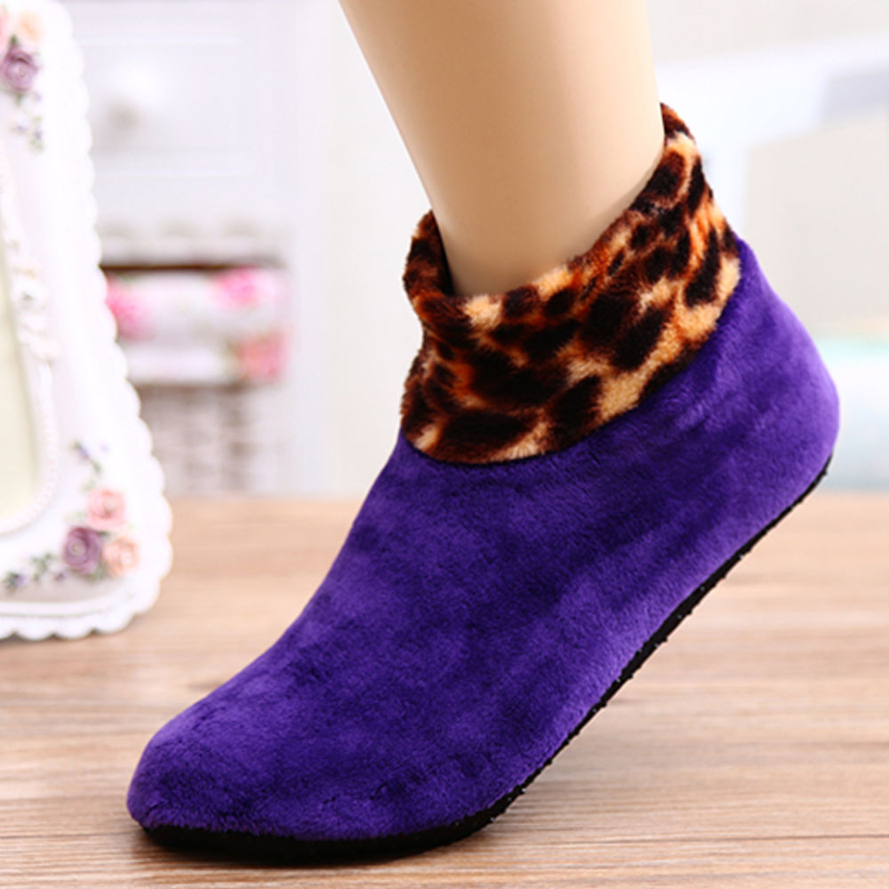 Winter Thermal Fluffy Slipper Socks Unisex Non Slip Fleece Lined red