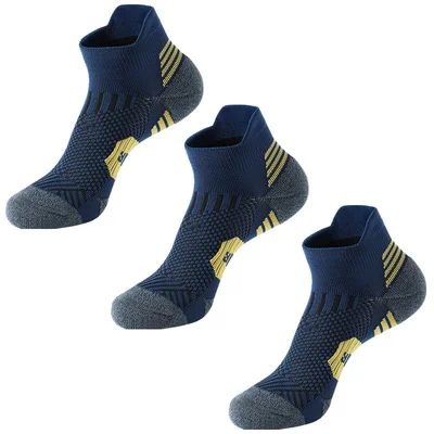 Non Slip Running Socks For Men & Women, Quick Drying Sports Sox With Towel Bottom, Basketball & Fitness Training Socks 3 Navy 41 46