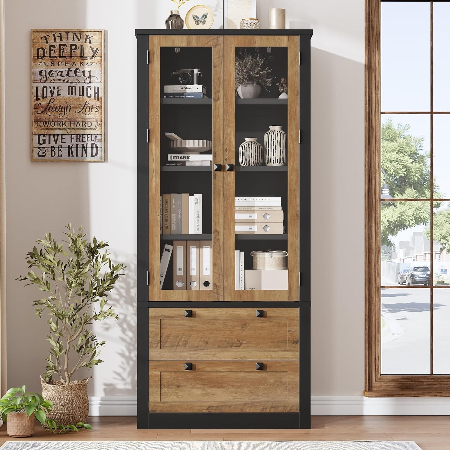 72" Kitchen Pantry Storage Cabinet - Modern Farmhouse Pantry Storage with 2 Large Drawers and Adjustable Shelves - N/A