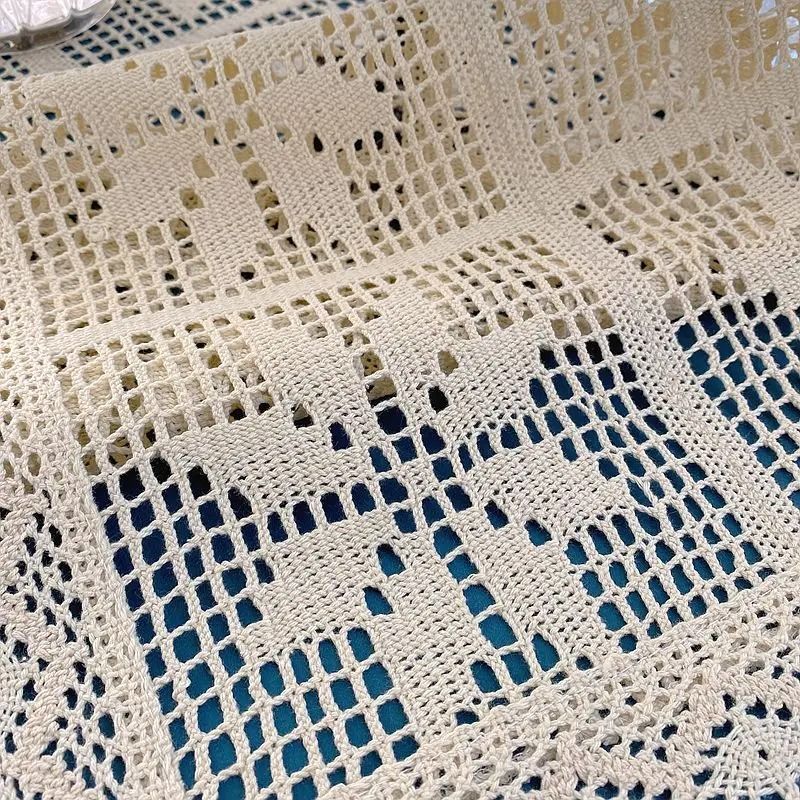 Crochet Cotton Linen Table Runner Lace Vintage Farmhouse Table Decor 40 X 190 Cm