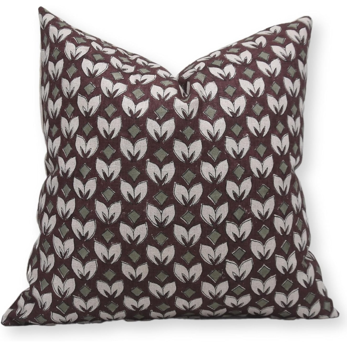 Fabdivine Earth Tone Pure Linen Block Print Pillow Cover Farmhouse, Summer Flower