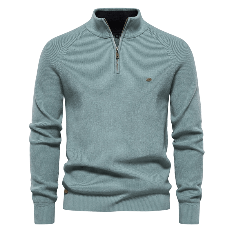 Mens Cotton Zip Cardigan High Collar Knitted Sweater l lake Blue